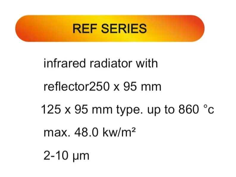 The Elstein REF series are infrared radiators that come pre-fitted with a reflector. The integrated reflector is designed to improve radiant efficiency by directing the emitted energy toward the target material. These units are also available as separate components (REF/250 and REF/125) for use with other Elstein heaters. The REF series is ideal for building efficient, custom heating arrays.