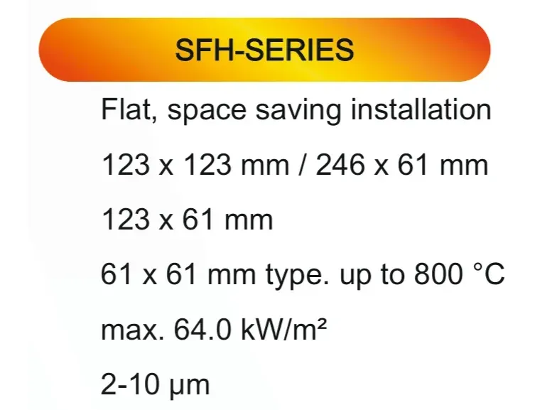The Elstein SFH series are flat ceramic heaters designed for space-saving installation. Their low-profile construction makes them an excellent choice for applications with limited space that also require high process temperatures, as they can operate up to 800°C.